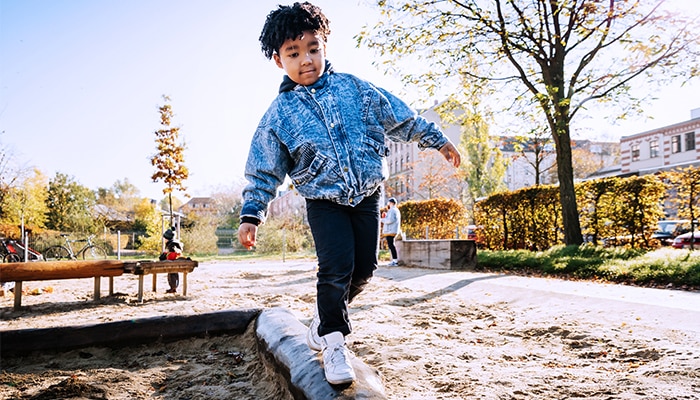 - Tell the children that they will be exploring balance as they walk across a floor-level “balance beam.”