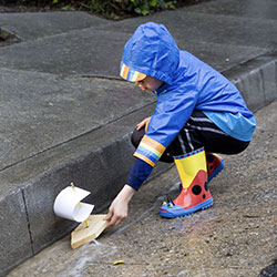 Give your child empty bottles, plastic bowls, sheets of foil, or other objects that are safe for the water. Ask him to create a boat using the materials. Once he has made his boat, test it to see if it floats. Add small objects to see how much weight it can hold.