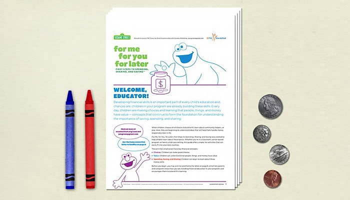 For Me, For You, For Later provides parents and educators with strategies and resources to help children learn basic financial concepts that highlight the importance of spending, sharing, and saving; making choices; and the value of people, things, and money.