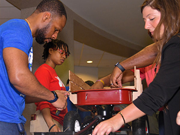 PNC volunteers build trikes and wagons that will be delivered to a local PNC Grow Up Great early childhood education partner center.