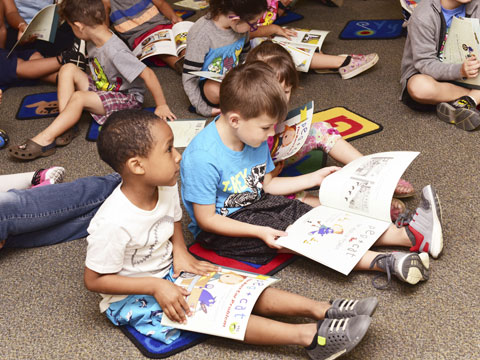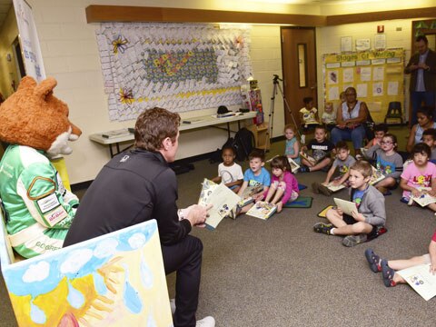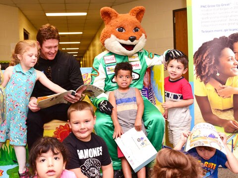 PNC Bank No. 9 car driver read to pre-K kids at PNC Grow Up Great partner center in Northeast PA.