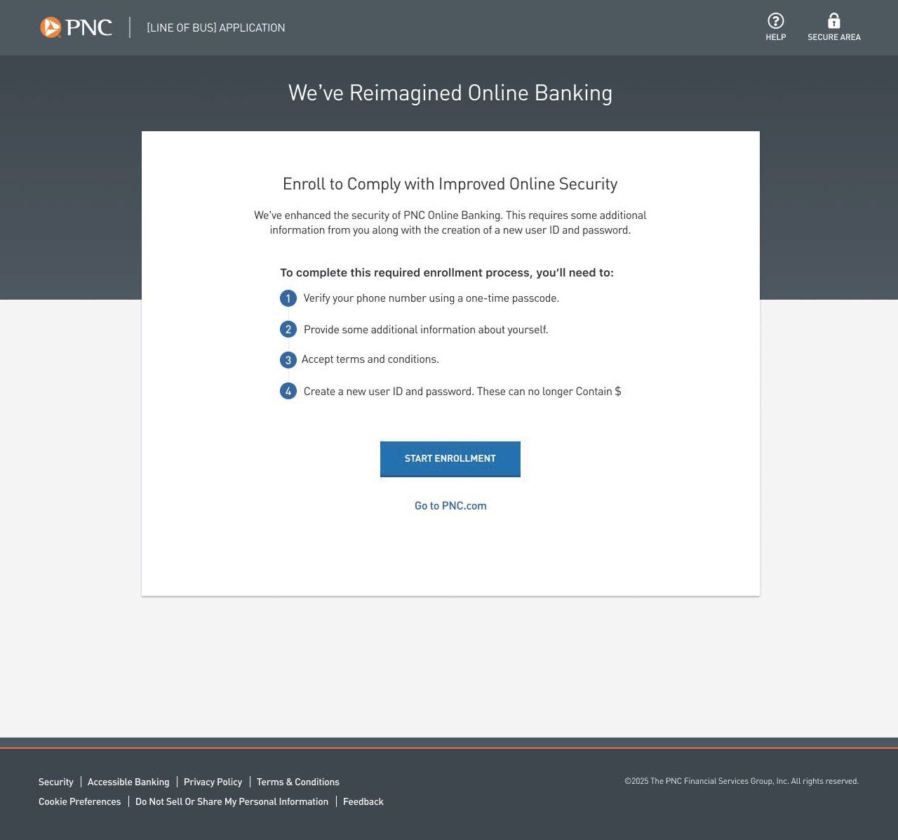 We are requiring delegates personal information moving forward as a security enhancement and fraud prevention measure. PNC will not use this information for marketing purposes.