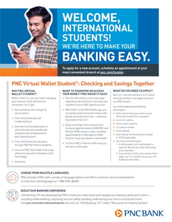 A new way of life begins as you study abroad in the United States. PNC has the banking resources to help you manage your finances.