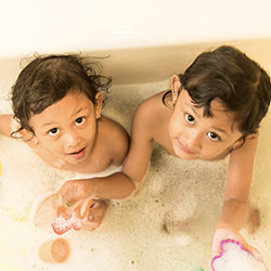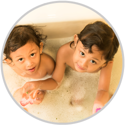 Ayude a su hijo a aprender acerca de las partes del cuerpo mientras toma un baño. Cante una canción como “Así es como nos lavamos los brazos, nos lavamos los brazos, nos lavamos los brazos. Así es como nos lavamos los brazos, cuando nos bañamos”. Repita la canción, usando una parte del cuerpo diferente cada vez.