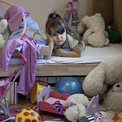 Convierta la limpieza en un juego. Realice un concurso para ver quién puede recoger más juguetes en cinco minutos. Dele a cada niño una categoría para buscar: un color, tamaño o forma específicos. Cuando se acabe el tiempo, cuente los objetos de cada grupo para ver quién encontró más.