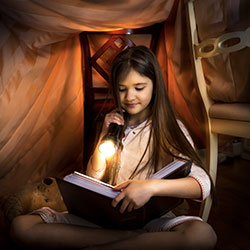 Finja que están acampando. Apague todas las luces y use una linterna para verse. Túrnense sosteniendo la linterna. Quienquiera que esté sosteniendo la linterna puede contar una historia. Cuando esa persona haya terminado, puede pasar la linterna a la siguiente persona.