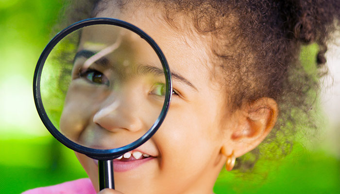 Los niños usarán un espejo para describir las partes de su cuerpo.