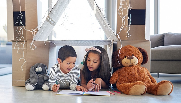 - Dígales a los niños que van a crear una estación de hibernación a partir de la caja grande de electrodomésticos.