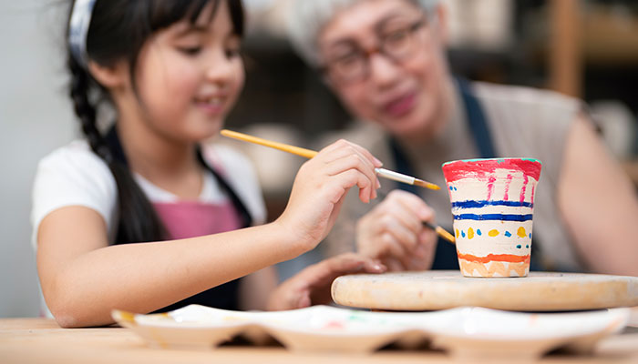 - Una vez que las ollas estén secas, pídales a los niños que pinten su obra terminada. Deje que la pintura se seque.