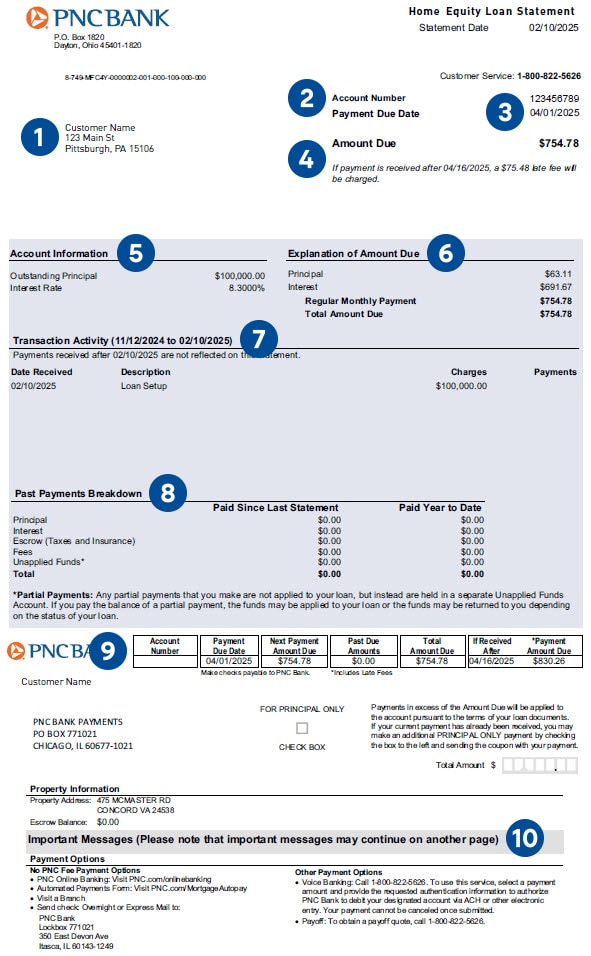 El número de cuenta identifica el préstamo con garantía hipotecaria que usted tiene con PNC.