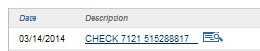 - Si el cheque se encuentra en transacciones recientes, puede seleccionar el vínculo azul para verlo, imprimirlo o descargarlo.