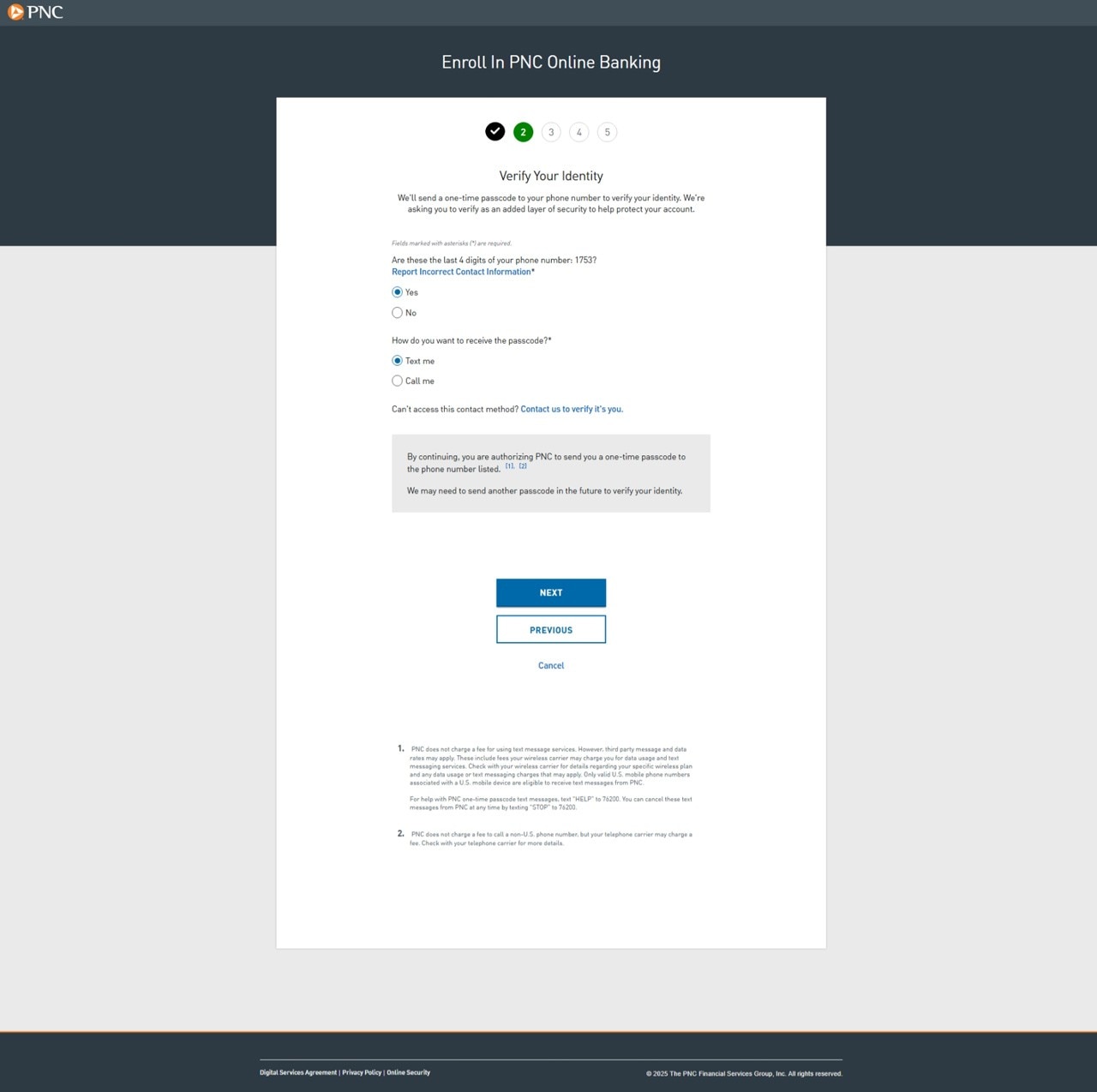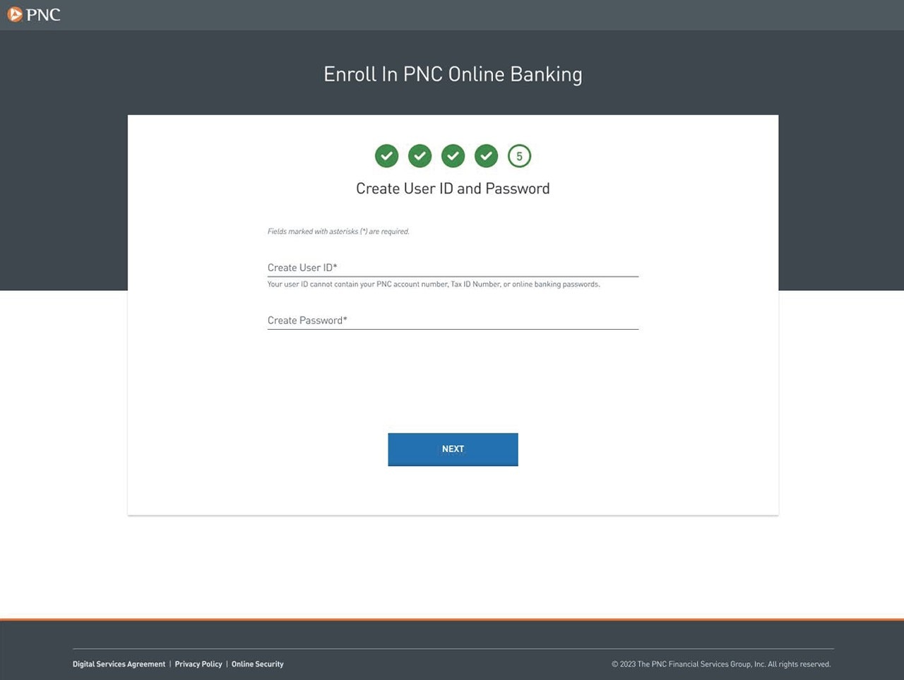 - Marque las casillas para aceptar los términos de contrato de la Banca Digital de PNC.