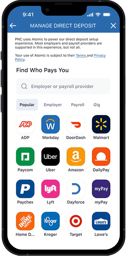 - Cambie su depósito directo a PNC en la aplicación móvil