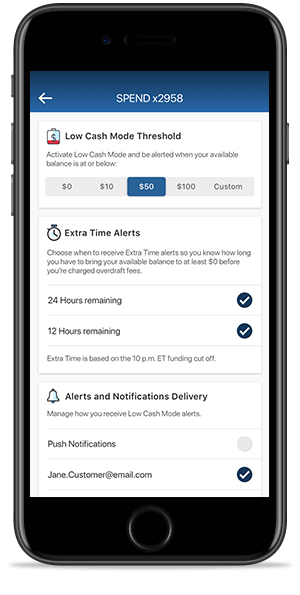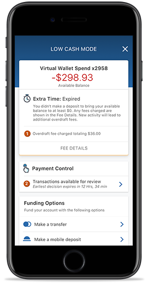 Low Cash Mode le da más opciones y control cuando su saldo disponible es bajo o negativo.