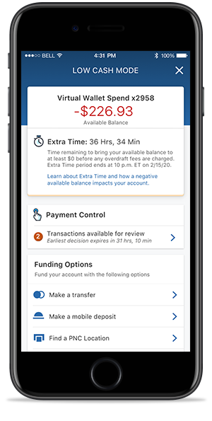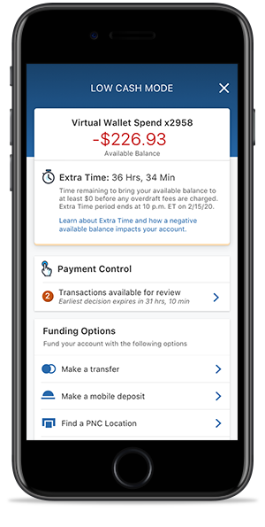 PNC Extra Time (tiempo extra de PNC) le dará tiempo adicional para agregar fondos a su cuenta para evitar cargos por sobregiro.