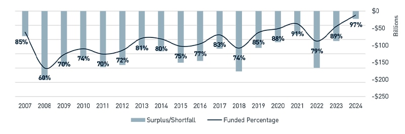 | Date | Surplus/(Shortfall) Billions | Funded percentage |
