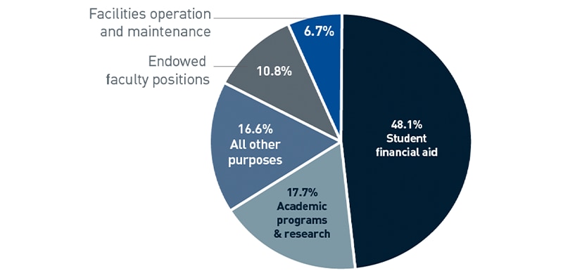 • The largest percentage of spending policy distributions (48.1%) went to student financial aid